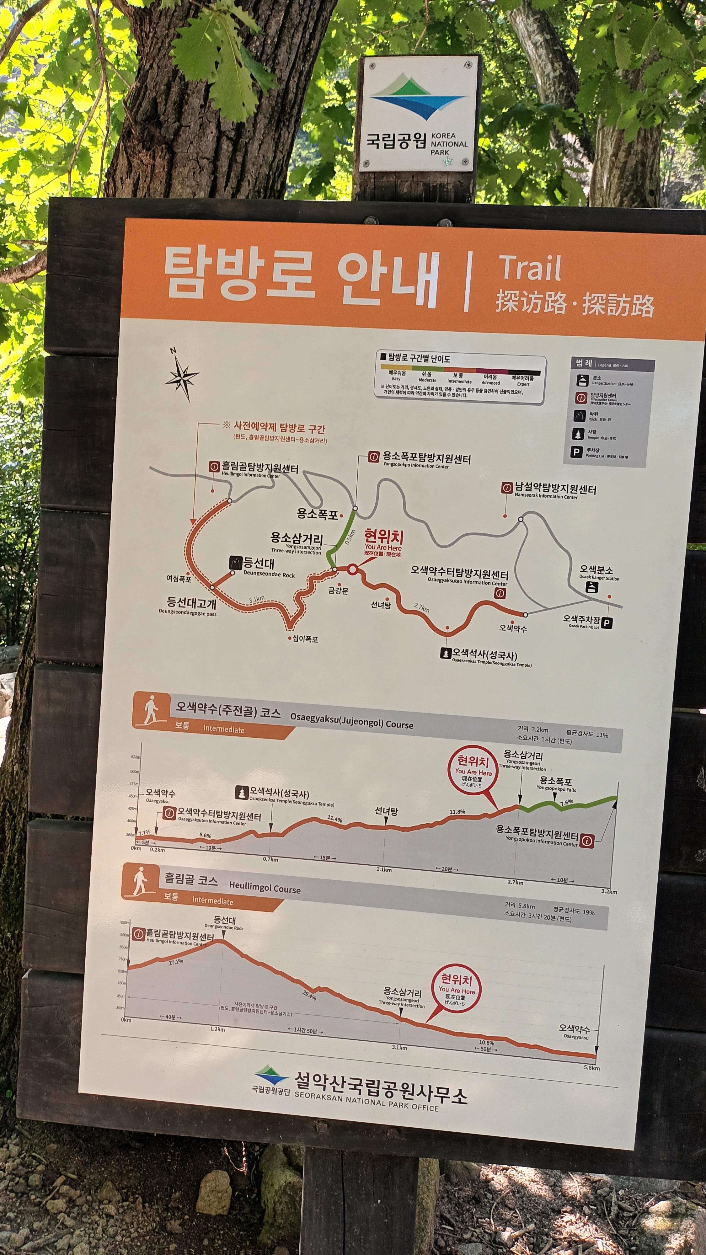흘림골탐방지원센터~용소폭포~오색계획