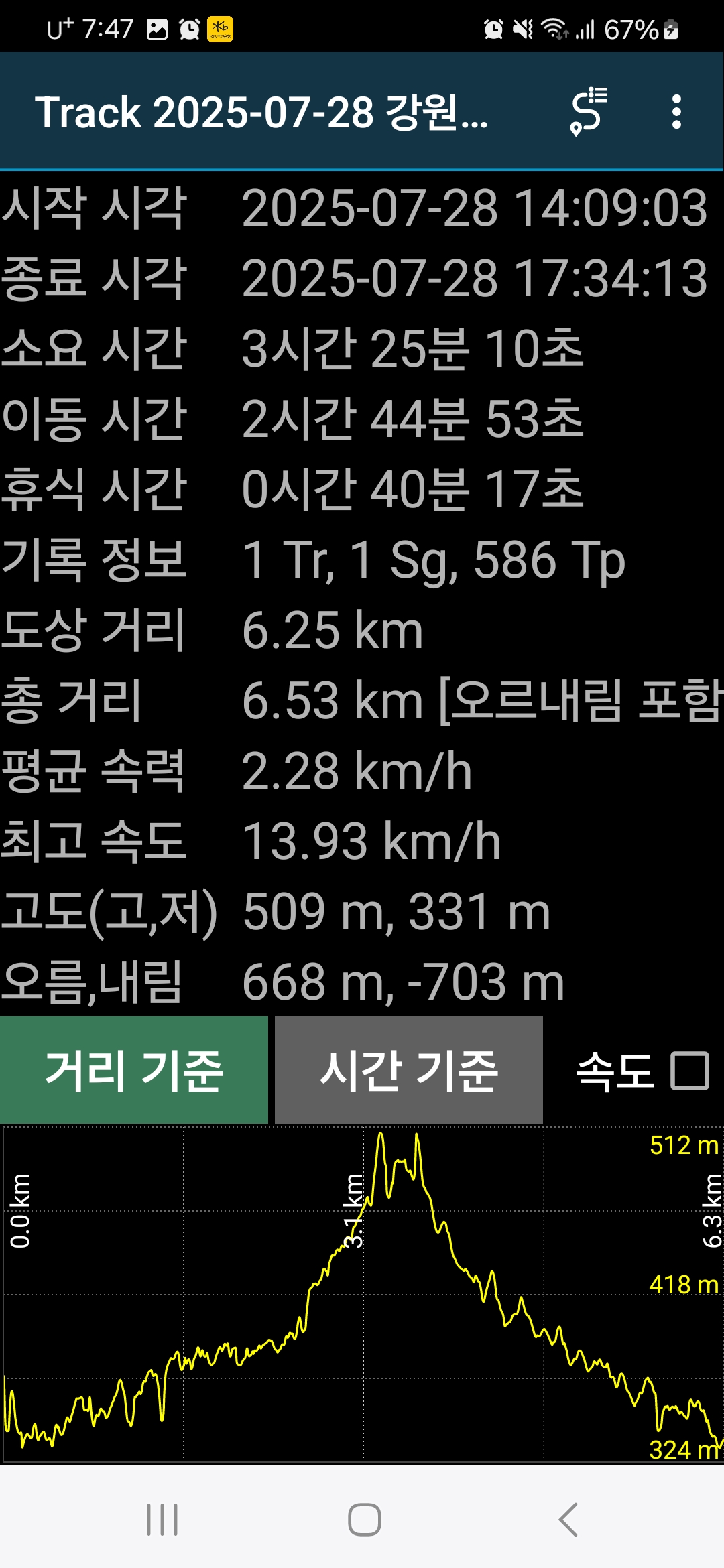 일기예보 주전골 온도 25도이지만 실온도는 33도 엄청뜨겁네요