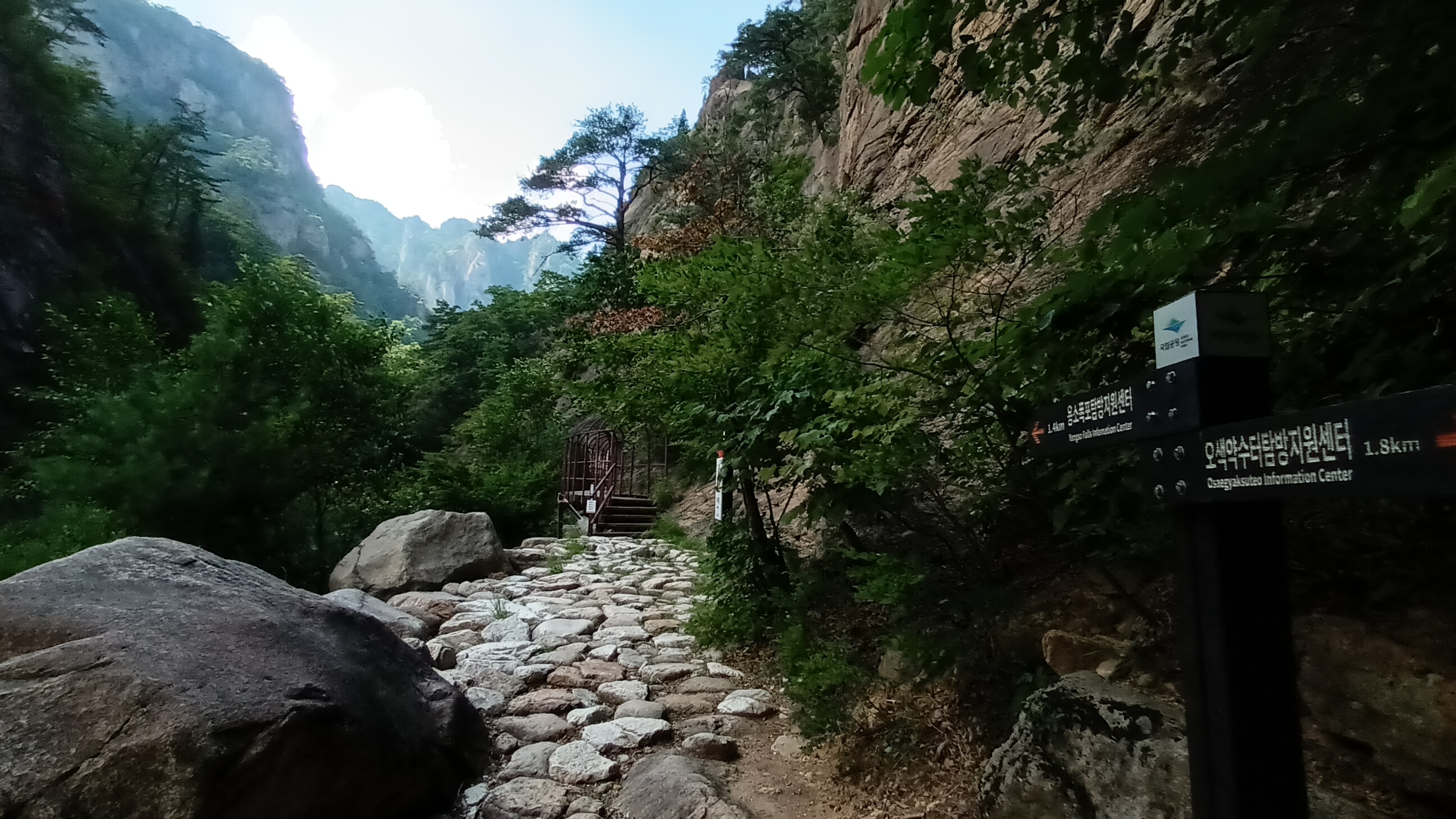 용소폭포로 가파른 계단으로 올라가는길