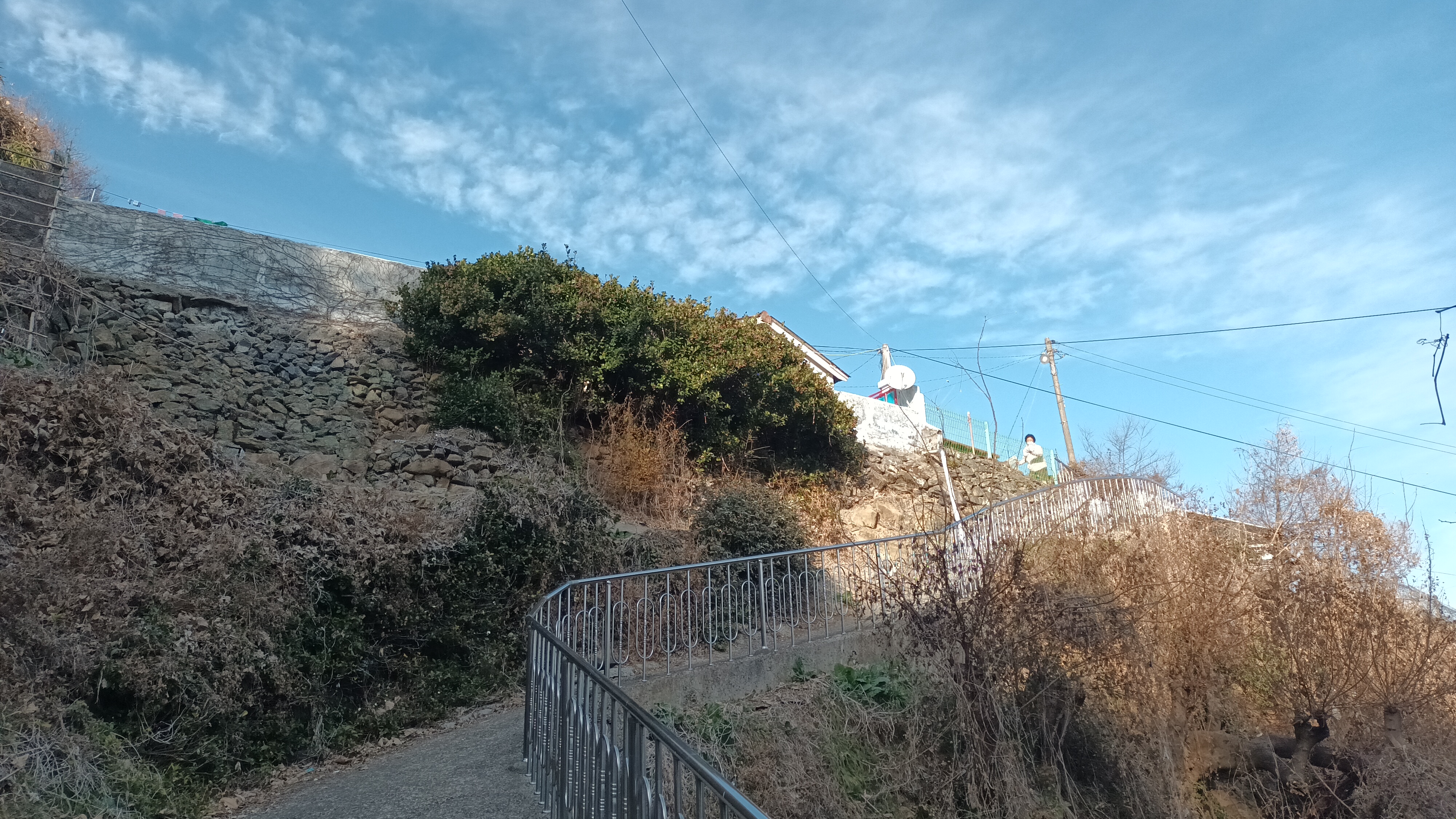 잡초가 많아서 길도 표시없고 가파른 언덕을 지그자그로 내려서니