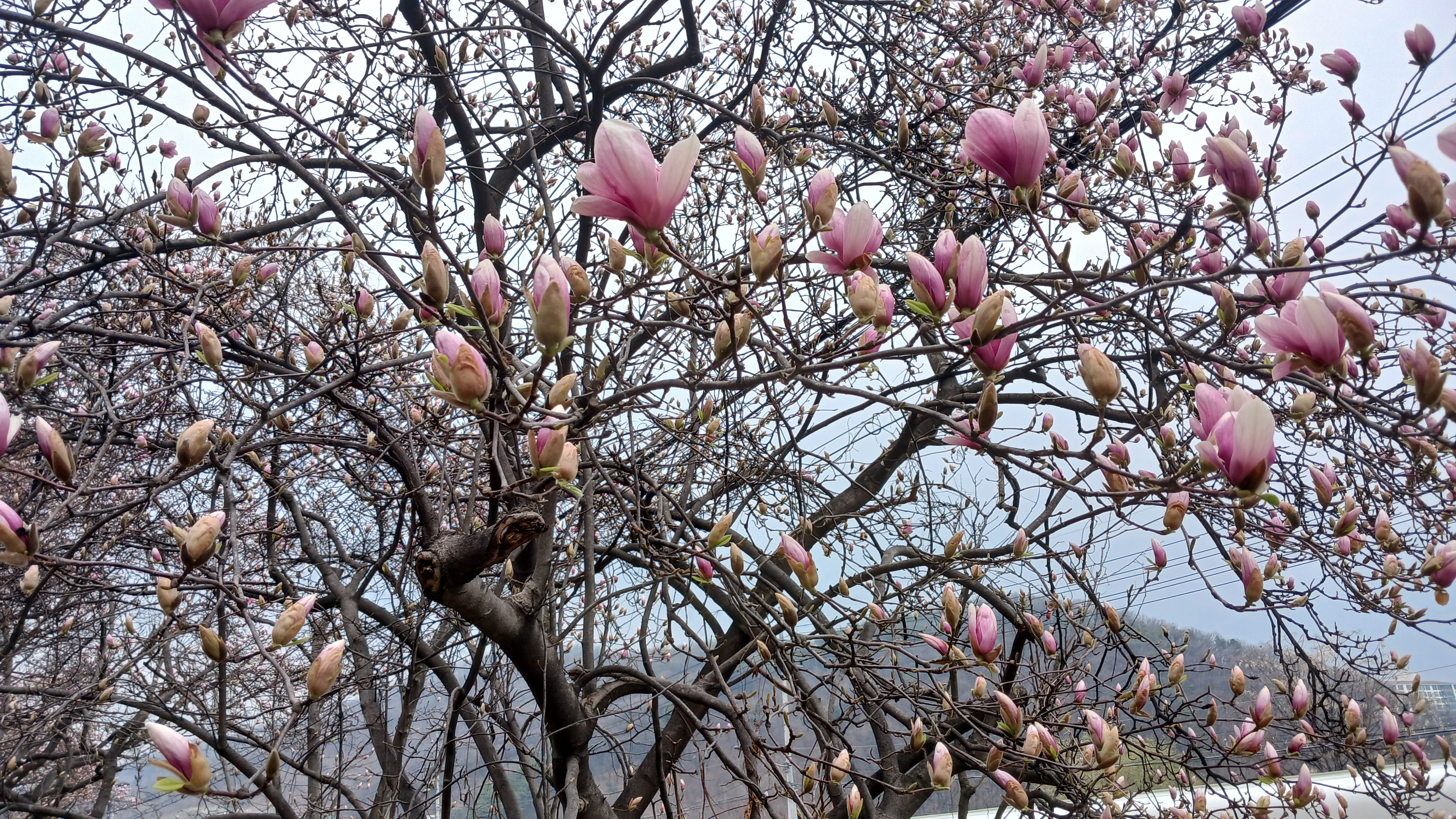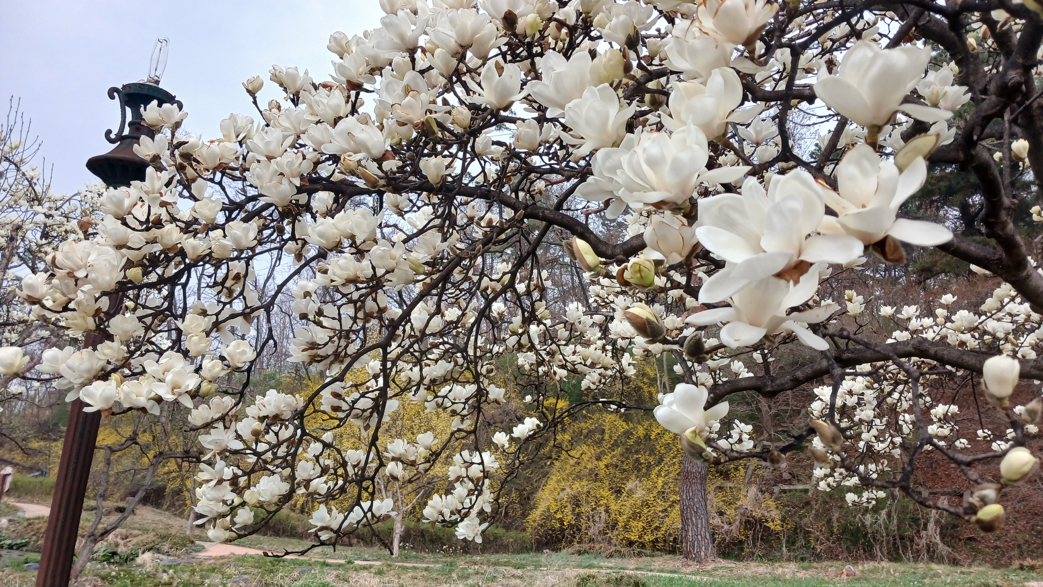 너무일찍 방문했나 봅니다 윗부분은 80% 정도 피었고 하단부는 10%정도 피엇고 다음주는 만개할것으로보입니다